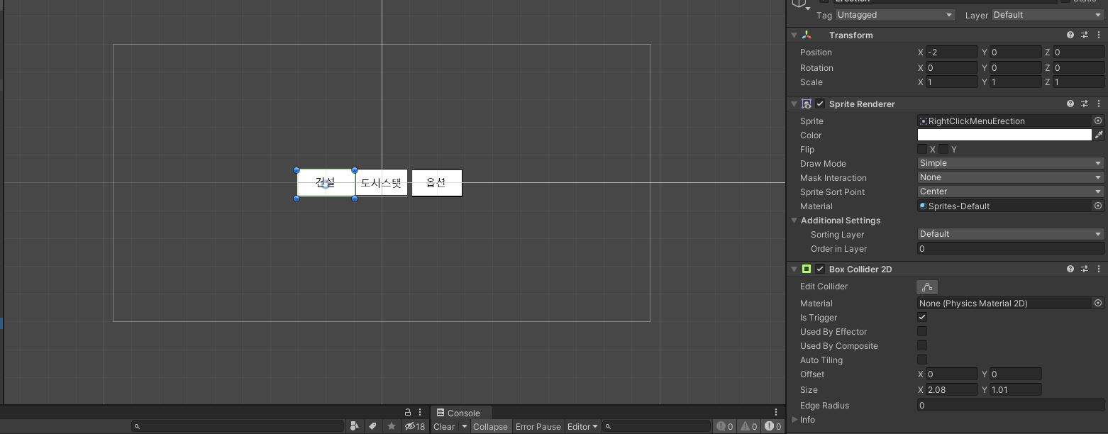 이미지를 만들고 그 안에 Box Collider 2D 컴포넌트를 넣는다.