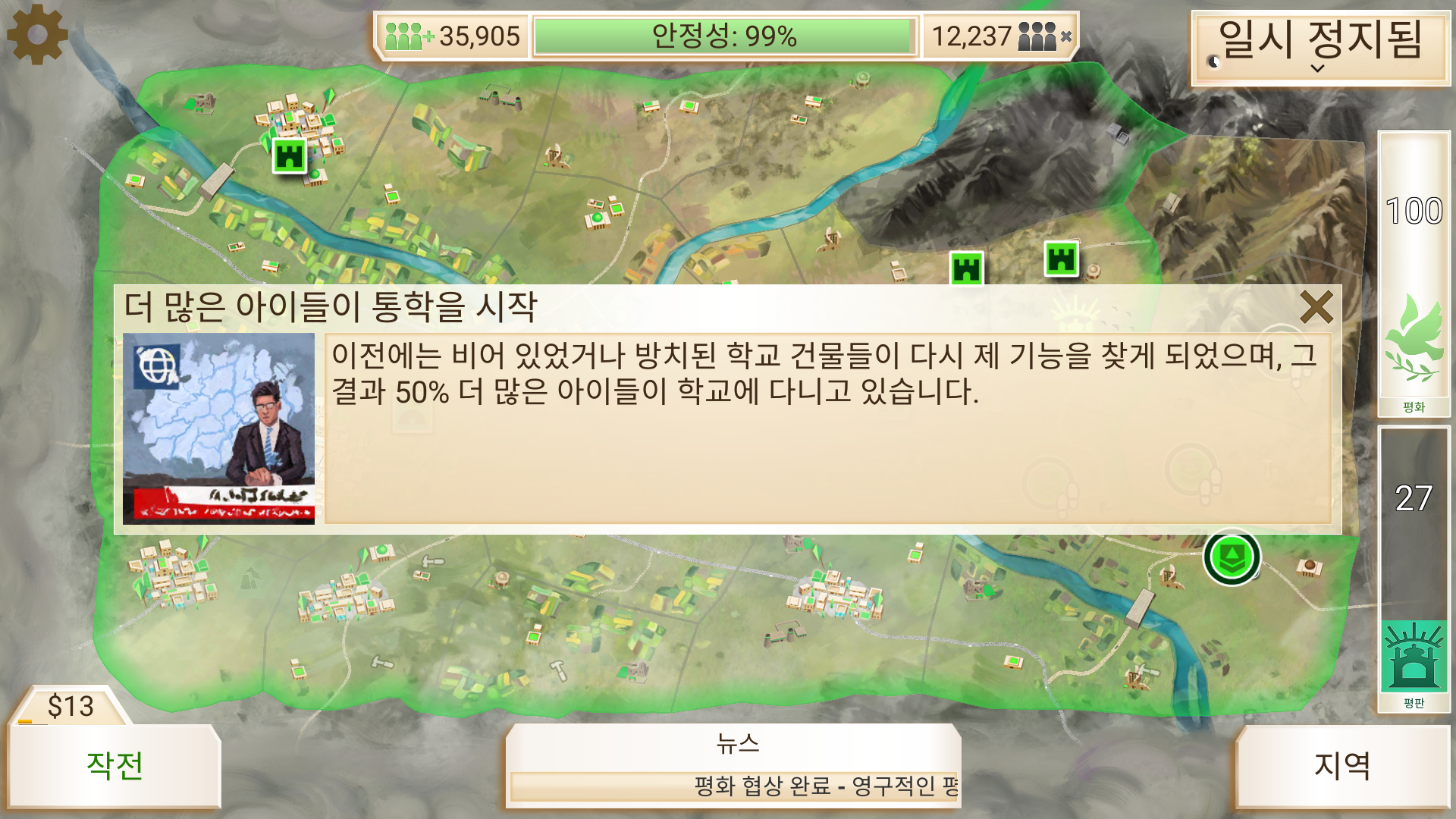 또 다른 특징으로는 유저 선택의 결과를 빠르게 돌려주는 방대한 이벤트가 있습니다. 뉴스, 지역민들의 소리, 외부의 요구, 반군과의 협상 등 정말 다양한 이벤트들은 유저의 플레이가 어떤식으로 가고 있는지 빠르게 느끼게 해줘서 잘하고 있을때는 성취감을 계속 느끼게 해주거나 끊임없는 자극을 줘 게임의 흥미도를 올립니다.