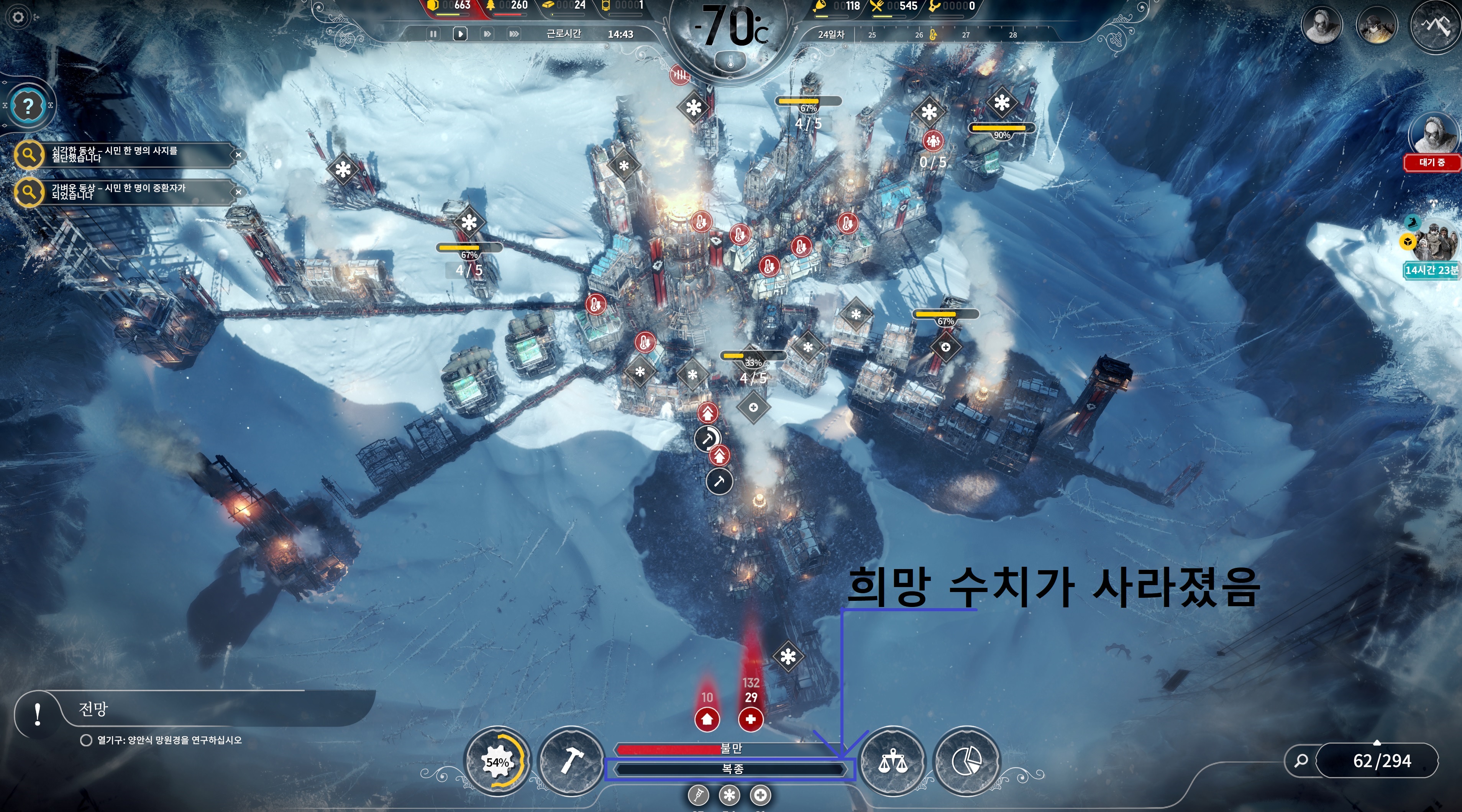 그리고 선택의 대가는 자원의 압박 혹은 민심의 하락으로 이어진다. 모든 선택에는 페널티가 따르며 항상 신중함이 필요하다.