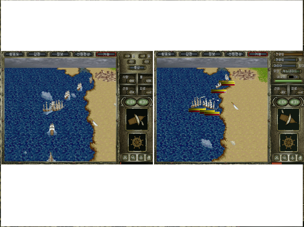 가장 명작으로 평가받는 2의 경우는 항해와 해전이 별개의 화면에서 진행된다.