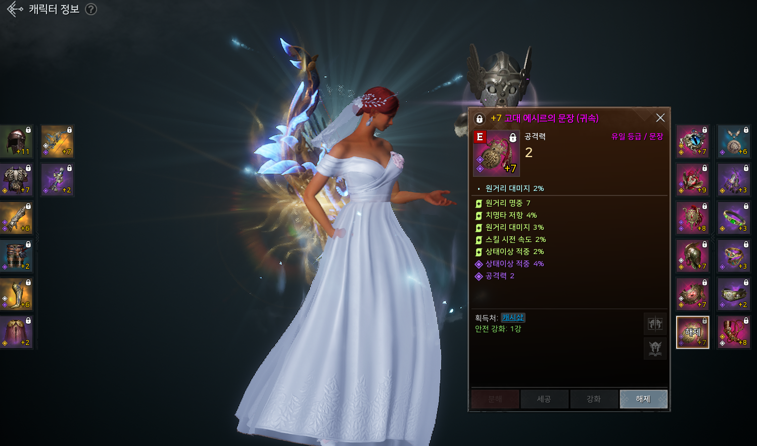 원래 공3이었는데 축세공이 별로 없어 공2, 상적4%로 끝냈다.
